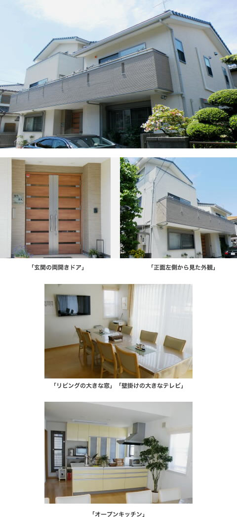 この家は2008年の8月にできました。間取りは3階建ての8LDK。1階には主人の事務所があり2階にはリビング。3階には子供部屋があります。玄関は両開きドアにするという工夫をしました。いろいろな工夫ができたのも関さんに手伝ってもらったおかげです。